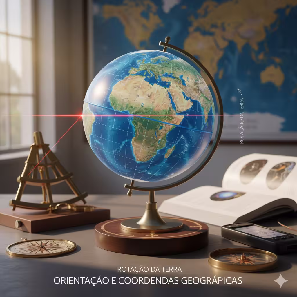 Tags: orientação geográfica, coordenadas geográficas, latitude e longitude, rotação da terra, fusos horários, cartografia, ensino fundamental ii, aula de geografia