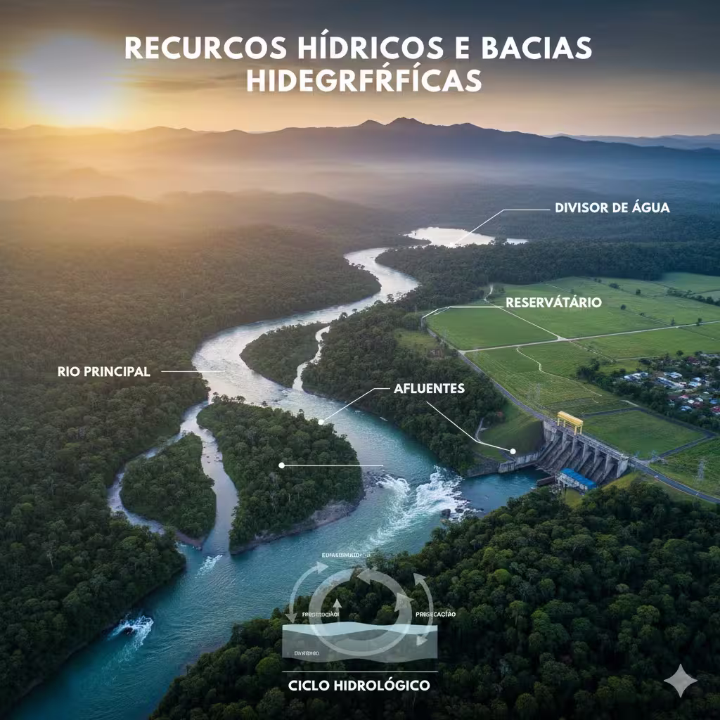 Tags: recursos hídricos, bacias hidrográficas, água, rios e afluentes, geografia física, meio ambiente, ensino fundamental ii, aula de geografia
