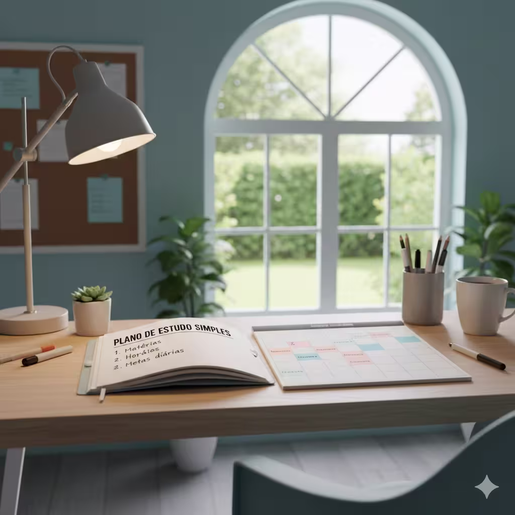 Um plano de estudo é uma organização simples do que você vai estudar em cada dia. Ele evita confusão e ajuda a não deixar tudo para a última hora.